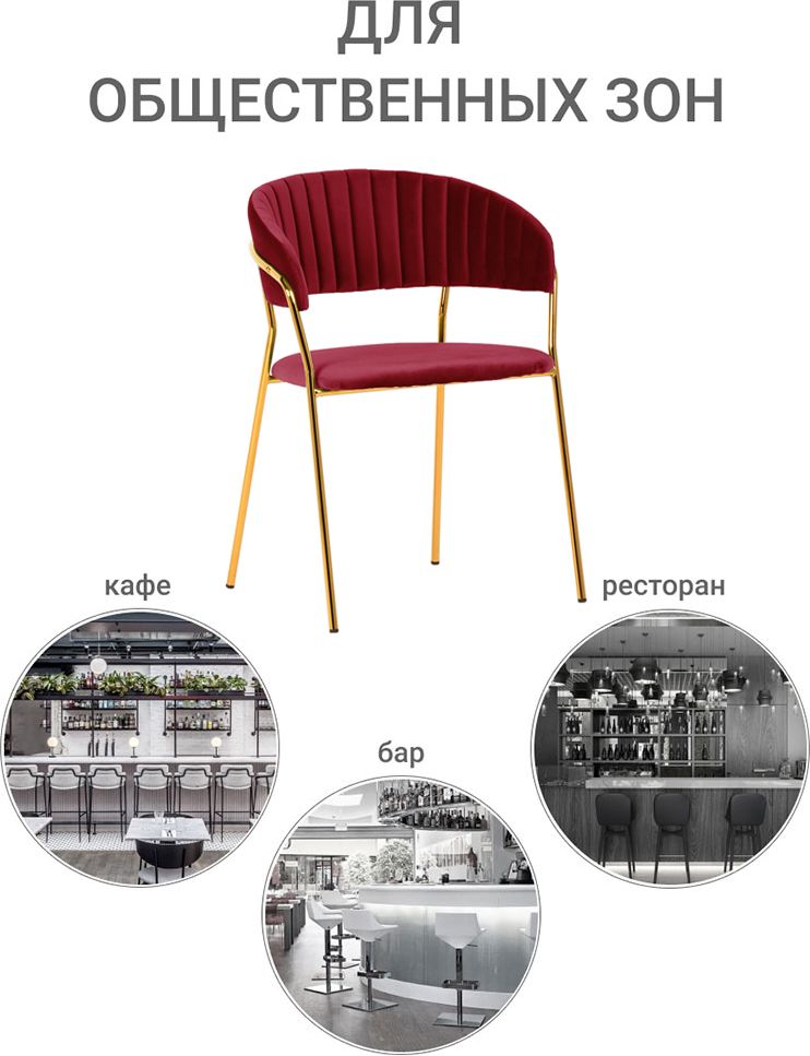 Стул Turin винный с золотыми ножками сочетает в себе изящные плавные линии и лаконичность. Оттенок обивки цвета идеально сочетается с хромированным блеском тонких стальных ножек. Легкая, но прочная конструкция способна выдерживать вес до 150 килограммов. Стильный дизайн, удобство и соответствие всем актуальным требованиям выделяют этот стул из ряда подобных и позволяют ему занять свое место практически в любом современном интерьере.